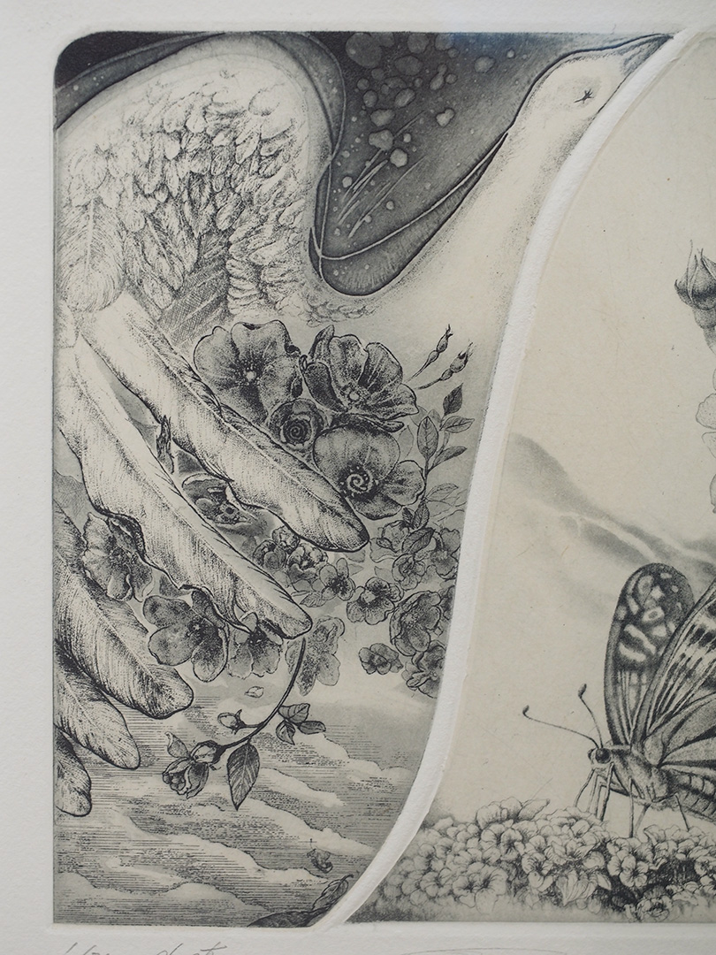 作品名:duet作家名:若月公平・佐藤妙子制作年:2025素材:エッチング、アクアチントサイズ:15x15cm価格:シート¥17,000(税込) 額付¥25,000(税込)