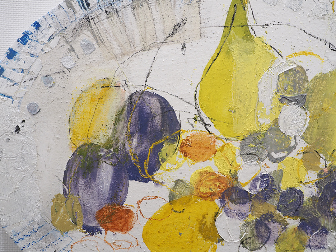 素材:キャンバスに油彩、アルミ箔、木炭、パステル、色鉛筆