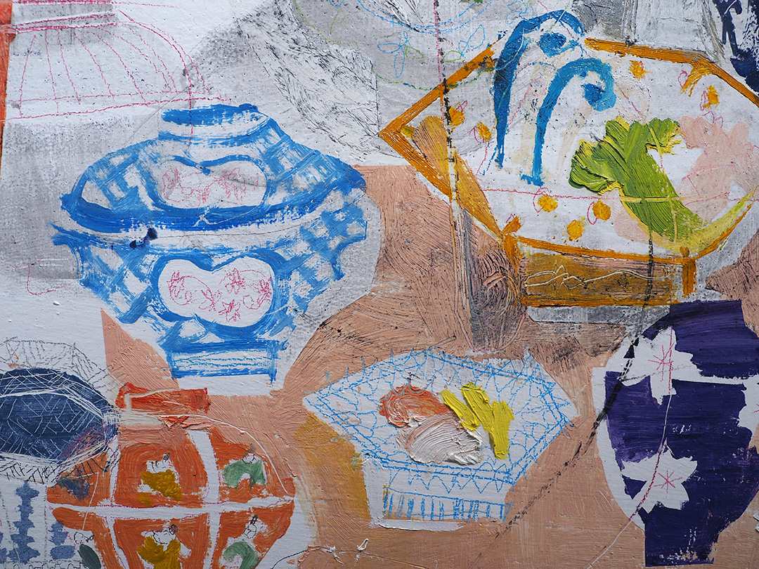素材:キャンバスに油彩、墨、木炭、色鉛筆