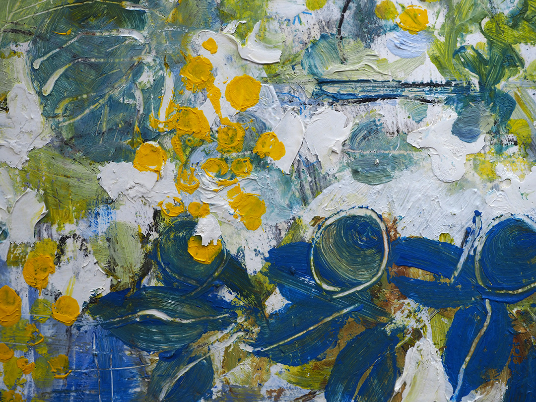 2013仙台 ロイヤルパークホテル ガーデンレストラン シェフズテラス 星のブーケ (2013) キャンバスに油彩、墨、木炭、色鉛筆 1000x1000x45mm