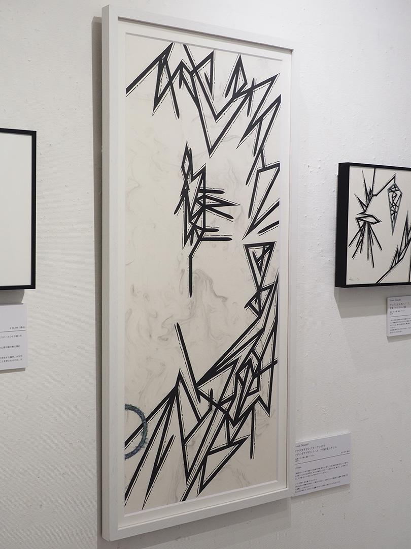 作品名:アナタガタオレソウニナッタラ ワタシガテヲサシノベル ソウ約束シタノニ作家名:Tosen Iwasaki制作年:2026素材:画仙紙、ボンド墨、顔彩、アクリル価格:¥57,200(税込)
