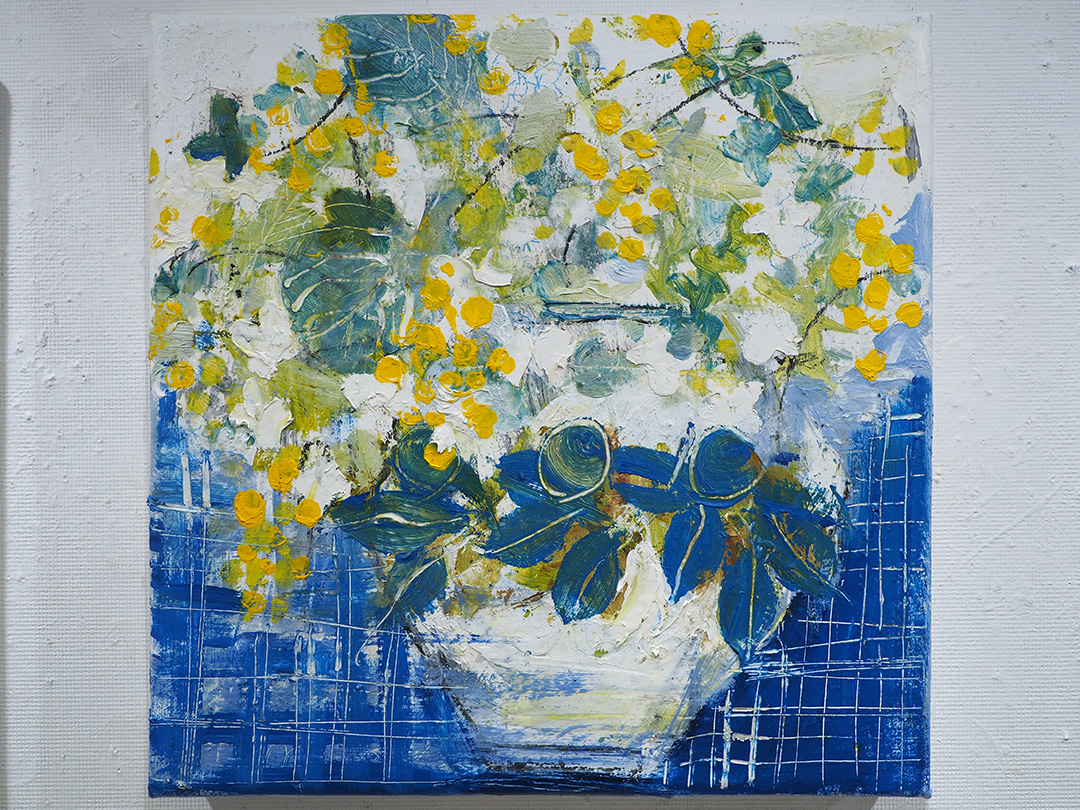2013仙台 ロイヤルパークホテル ガーデンレストラン シェフズテラス 星のブーケ (2013) キャンバスに油彩、墨、木炭、色鉛筆 1000x1000x45mm
