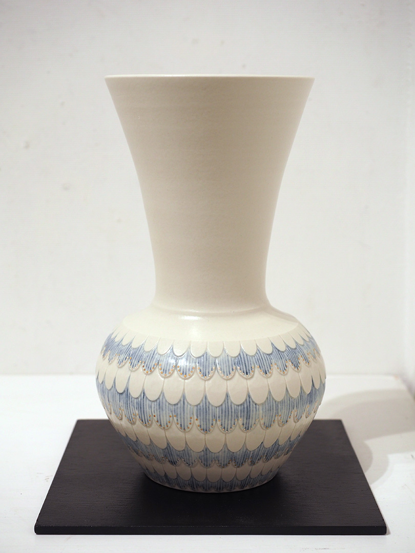 白磁幾何七宝紋花入竹田みずほ径135x250mm¥110,000(税込)