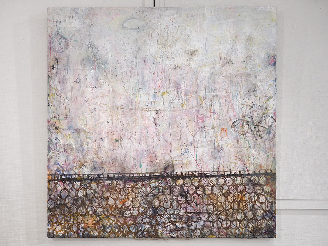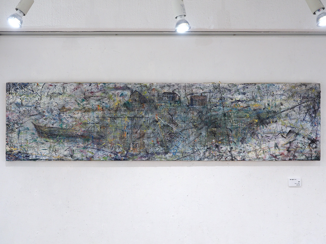 今年見た自由美術展の出品作は、かたちを結ばぬイメージが厚く重層したものであった。これは近年顕著な作風である。形を結ばぬ混沌としたイメージの堆積は、昏く重い気配が漂う。意識下に拡がる深い闇を想像させる。同時に、その昏くて深い画面を見詰めていると、現実を通り越した世界を感じさせる。目に見えぬ気配が濃厚なのだ。それは不可視の世界を予感させる。