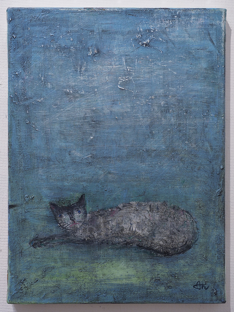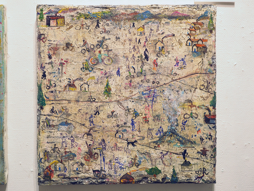 以前務めていた平塚市美術館には、平澤重信さんの作品が3点所蔵されている。どれも自由美術展に出品したものだ。「時の待ち合わせ場所」(2004年)、「時の間」(2005年)、「時の苑」(2007年)の3点。淡いブルーあるいはセピアを背景に、さまざまなモチーフが描き込まれている。その多くが犬や猫、自転車に乗るひと、小さな家等々。どれも平澤作品に繰り返し登場する常連のモチーフである。各モチーフは脈絡なく配置され、現実の束縛から解放された浮遊感を持つ。この脈絡の無さと浮遊感が、見る者の心の奥底に働きかけ揺り動かす。夢で見たような既視感が生まれ、白日夢のような不思議なリアリティーが生じるのである。それは普段忘れている、遠い記憶に繋がるものだ。忘却の淵に留まる、眠っていた記憶が呼び覚まされる。この不思議な既視感、リアリティーを孕むことで、平澤さんの作品世界は、単なるファンタジーと一線を画す。見る者に切ない郷愁の念を呼び覚まし、戻れぬ過去へと思いは馳せる。記憶のスクリーンが次々とめくられ、時空を超えて過去と現在の往還がうまれる。
