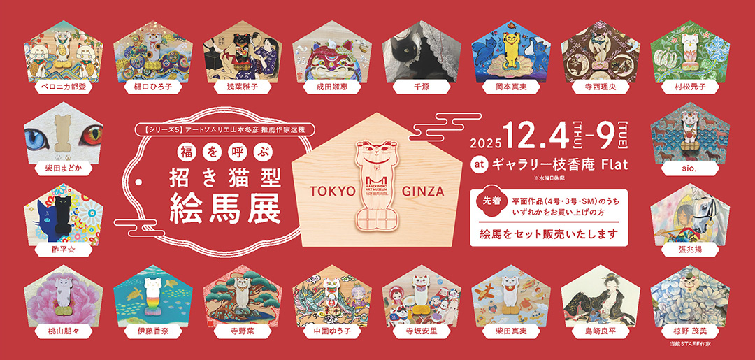 岡山の招き猫美術館は昨年30周年を迎えましたが、その発展ぶりは年々目覚ましいものがあります。招き猫美術館の東京でのPRも兼ねた「招き猫」をテーマにした企画展も隔年で開催され、今回で5回目を迎えることになります。私の推薦する作家さんに参加してもらって銀座のギャラリー枝香庵で開催されています。毎回趣向を変えた素材を作家さんに送って制作してもらいますが、今回は素材として「招き猫型絵馬板」を提供し、それに絵を描いてもらうとともに自由な小品を2点描いてもらい同時展示するものです。どんな作品が出品されるか楽しみにしています。